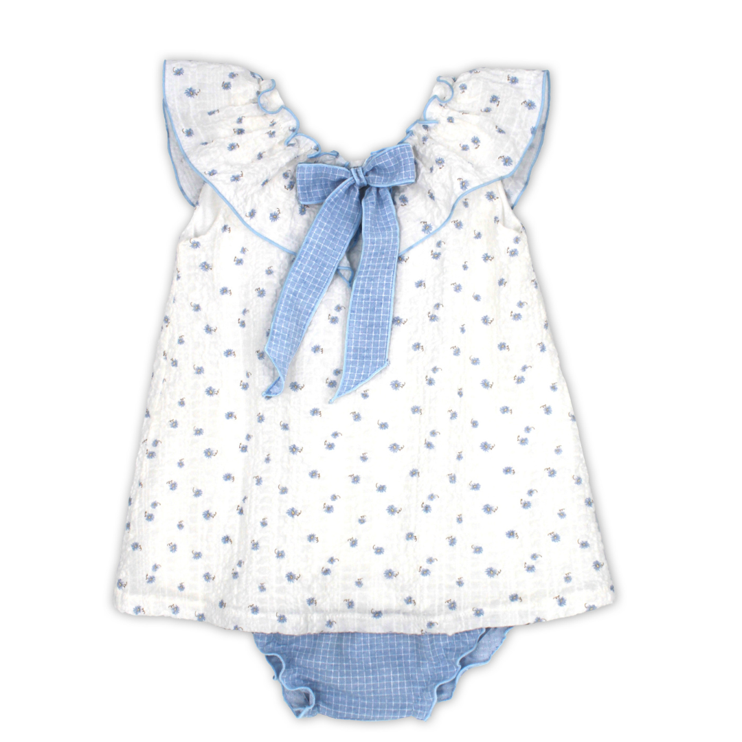 Delicate and timeless, this girls’ baby blue floral dress and briefs set by Rapife is a beautiful choice for little ones. Crafted from soft, breathable fabric, the dress offers all-day comfort while the matching briefs complete the look perfectly. Featuring a sweet floral print and classic Spanish styling, this charming set is ideal for warm-weather days, special occasions, or everyday wear. Gentle on delicate skin and effortlessly elegant, it’s a lovely addition to any little girl’s wardrobe.